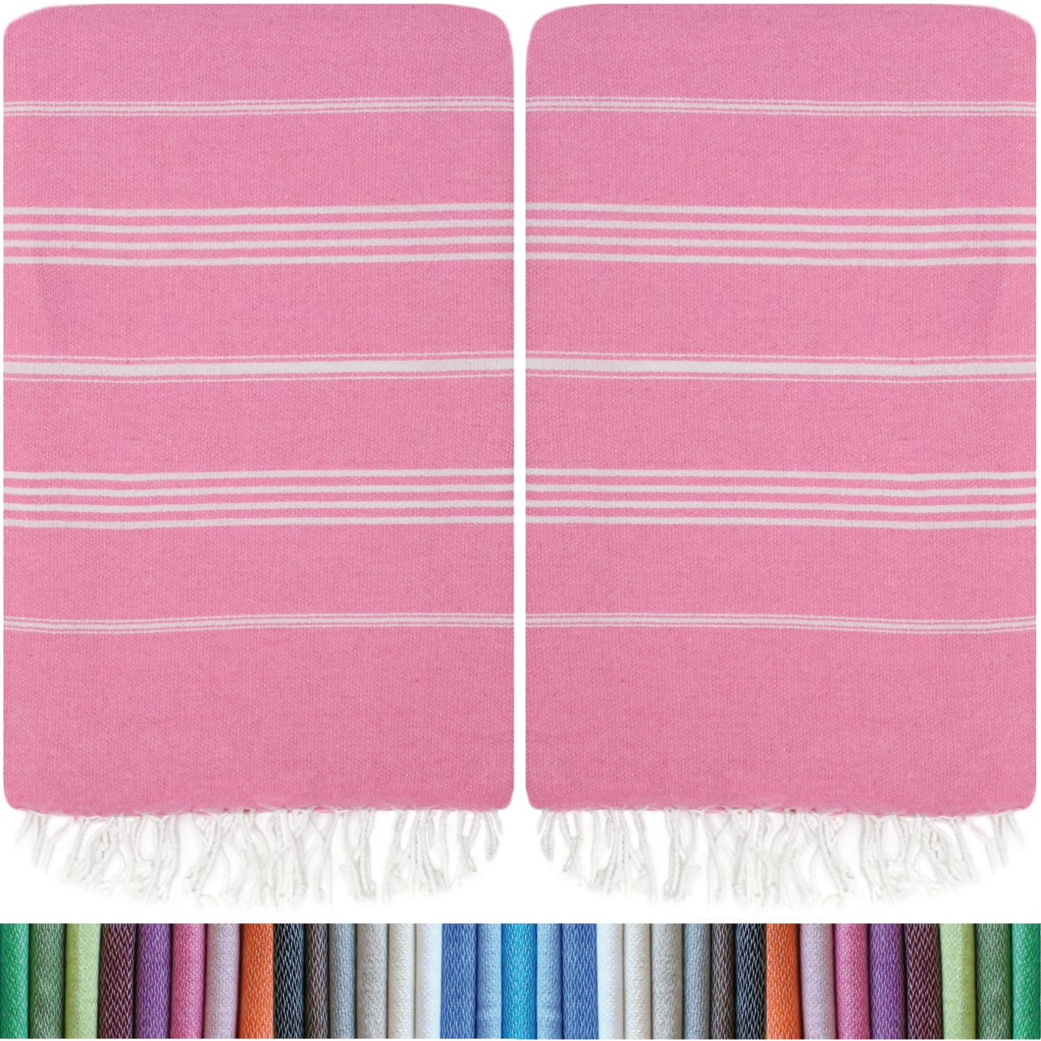 HAVLULAND |Pack of 2| Turkish Beach Towels Oversized 39x71, 100% Turkish Cotton Sand Free Quick Dry Absorbent Towel Travel Blanket for Adults Beach Gift Beach Essentials - Pink
