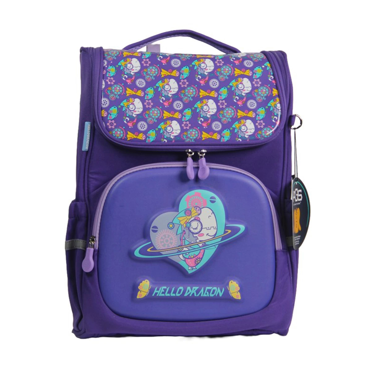 Hello Dragon School Bag Model 8 Purple Meet Hello Dragon School Bags, the most fun and stylish way to carry your children's school supplies! These bags make school days even more enjoyable with their cute design that stimulates children's imagination. The bag's large interior and multiple compartments allow children to carry all their school supplies organized. Everything will stay in its place thanks to specially designed compartments for notebooks, books, pencil cases, water bottles and snacks. Additionally, the zippered front pocket provides extra storage space for small items. Hello Dragon School Bags are ergonomically designed with children's comfort in mind. Made from durable materials, the bag is ideal for long-term use and easily adapts to the intensity of school life. Hello Dragon School Bags are an excellent choice for primary school children. With its cute design and useful structure, it will be a favorite of both children and parents! Age Group 6+