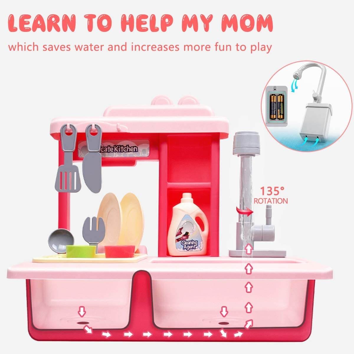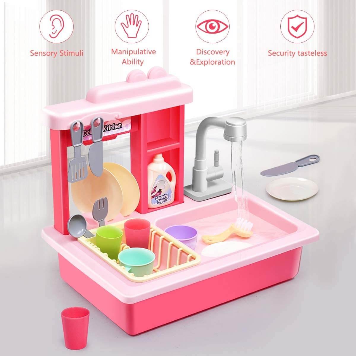 Interactive Sink Play Set Get ready for fun-filled games with the Interactive Sink Play Set! A great play set for your child to experience dishwashing in the kitchen! The sink tap works with batteries. Water placed under the sink flows from the tap. It adopts an automatic water circulation system to save water and increases the fun of the game. There is an installation diagram on the box. It works with 2 x 1.5V AA batteries. Batteries are not included in the box. IMPORTANT NOTE: The product has 2 different colors. The price is for a single product. Please specify your color preference in your order. If you do not specify a preference, any color from stock will be sent. Incoming product If you still want to change it, the round-trip shipping fee for the change will be paid by you. Age Group: 3+ Years Barcode: 8680863027509 Item No: S00002750 Box Dimensions: 45.5 x 12.5 x 28 cm. Desi Value: 5 Desi