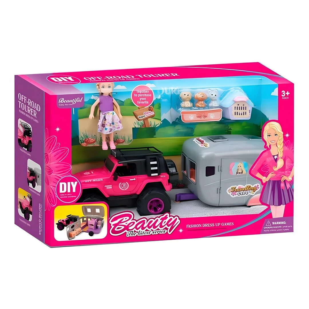 Lighted Jeep Caravan Lighted Jeep Caravan is a fun toy set designed for adventure-filled games. The realistic jeep and caravan design attracts attention with its flashing lights. The interior of the caravan is detailed and can be opened and used during play. Children's imagination It is ideal for little ones who love to explore. Box Dimensions: 15 x 29 x 50 cm. Age Group: 3+ Years