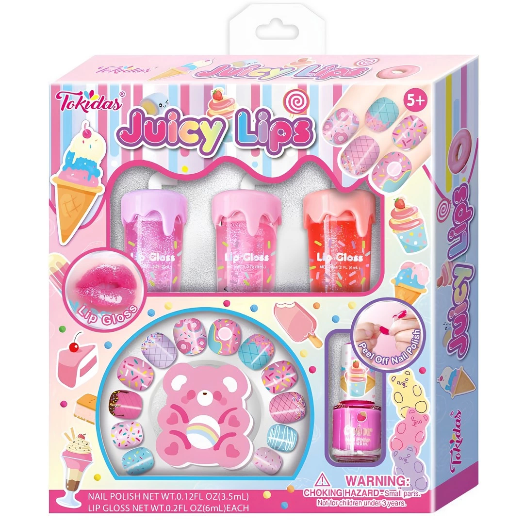 Juicy Lips Specially designed for little style icons, Juicy Lips Children's Lipgloss and Nail Set adds a sweet touch to children's care routine with its fun and colorful design! Made with safe and gentle ingredients suitable for sensitive skin. Contains moisturizing and slightly shiny colored lipglosses. Includes nail polish and decorative accessories for tiny nails. Fun packaging that will attract children's attention. Box Dimensions: 16 x 18 x 3 cm. Age Group: 5+ Years