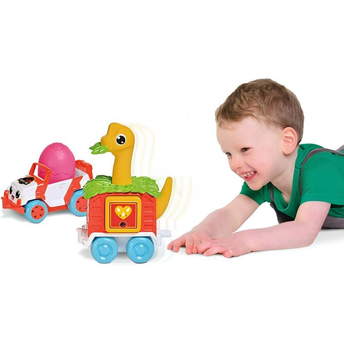 Jurassic World Dino Rescue Vehicle Do you remember the first time you saw a dinosaur? Toomies Jurassic World dinosaur toys are designed for a play experience that supports children's development and are ready for a new adventure! Shake the baby dinosaur to hear it roar. Match the shape blocks according to the shapes on the sides of the wagon. Connect the mini vehicle to the wagon. Place the baby dinosaur into the vehicle, press the big dinosaur's head and the vehicle will go by itself! Baby Triceratops spins around itself as the vehicle moves! Drive the vehicles or push them! Can be played together or separately. Can move on hard surfaces or carpeted surfaces. Jurassic World Dino Rescue Vehicle is compatible with other Toomies Jurassic World themed vehicles and can be connected to each other. Box dimensions: 28 x 11 x 21 cm. Age Group 1+ Years