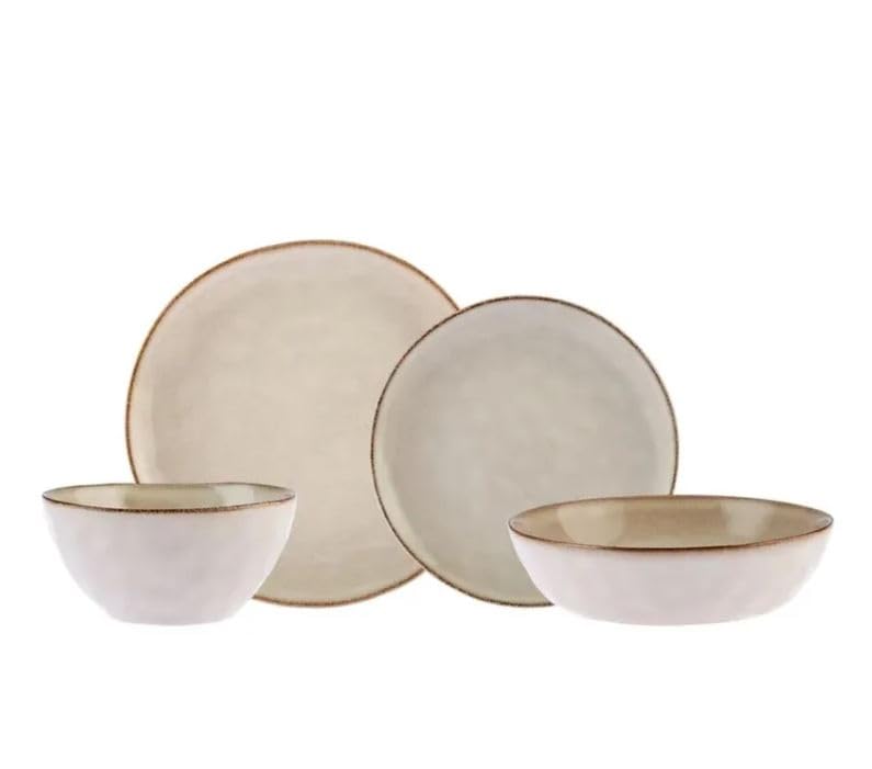 Karaca Aria Reactive Tableware Set for 6 People, 24 Pieces, Beige, Dining Tableware, Unique in The Foreground, Natural Colours, Cleanable and Durable