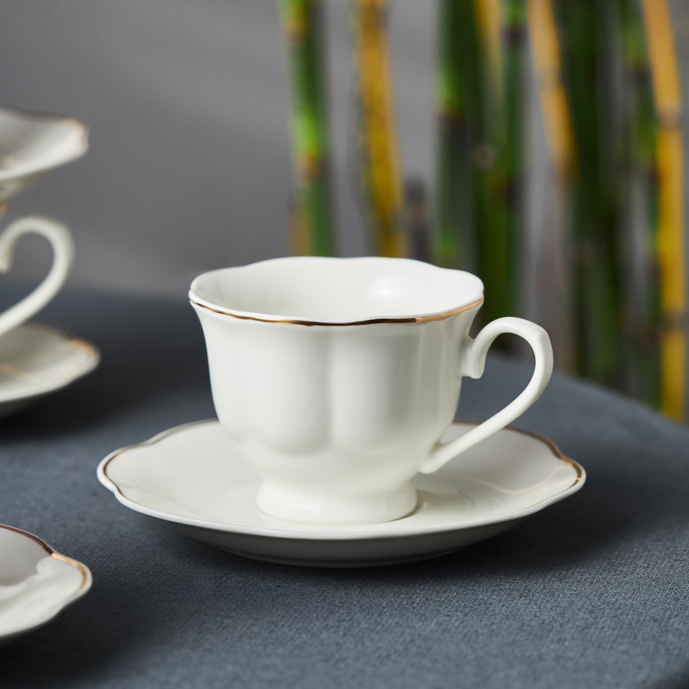- Versatile Cup Set: The coffee set is ideal for serving Turkish coffee, Armenian Coffee, Arabic Coffee, or espresso, making it suitable for hot beverages. These cups have a scalloped edge and its white and gold look and elegant handles are ideal for everyday use and special occasions.