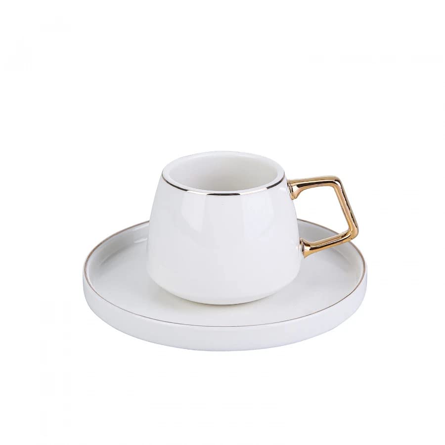 - MODERN DESIGN: Pro-Grade porcelain espresso cups are practical and versatile. This set has an elegant, simple, modern design. White porcelain cups with gold handles and white saucers. It is not recommended for use in a microwave or oven. Handwash is recommended.