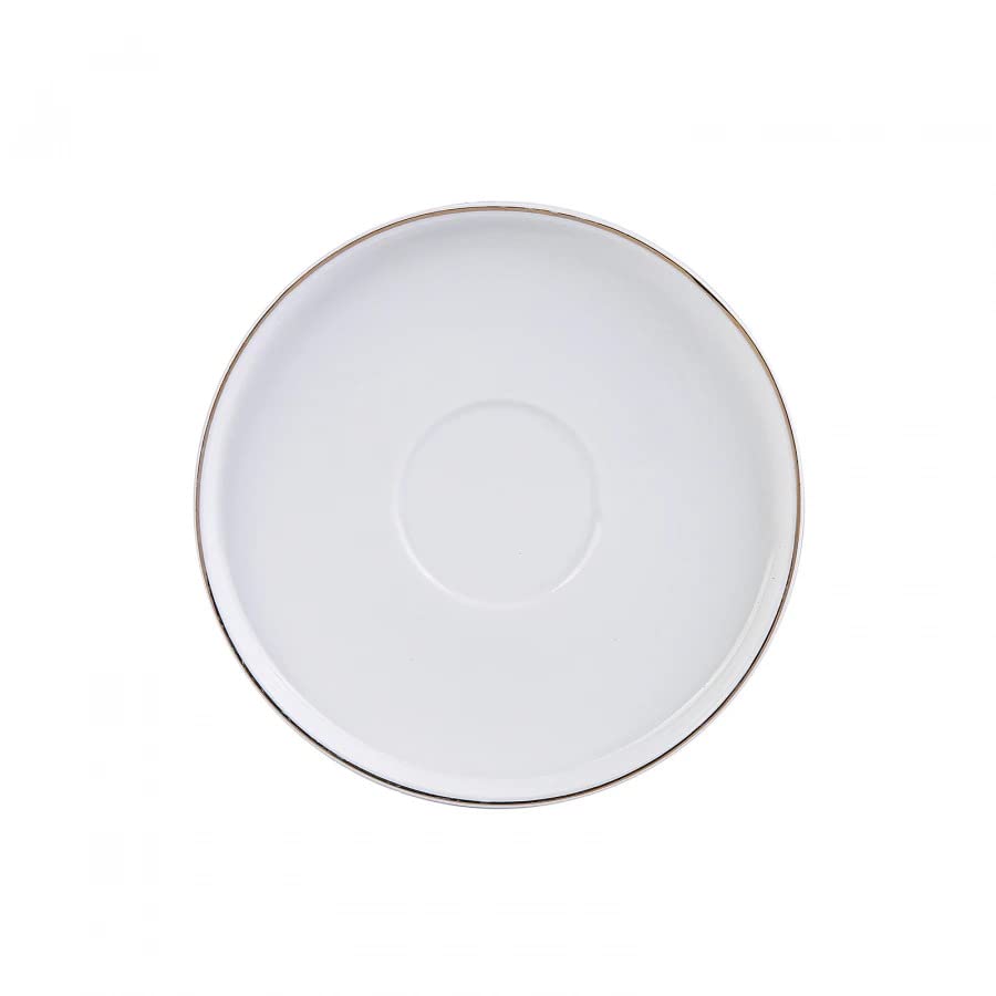 Details: The Karaca Saturn Porcelain Espresso Turkish Coffee Cup Set: A Blend of Elegance in White and Gold Set Content: The Karaca Saturn Porcelain Espresso Turkish Coffee Cup Set is designed for 2 people and includes two espresso Turkish coffee cups, each with a 90ml capacity, along with two saucers. This set is ideal for intimate coffee moments with a friend or loved one. Material: Crafted from high-quality porcelain, this coffee cup set features a timeless combination of white and gold. Porcelain is celebrated for its durability and ability to maintain its appearance over time, making it an excellent choice for long-lasting tableware. Design Aesthetics: The Karaca Saturn Coffee Cup Set boasts a classic and elegant design. The white and gold color scheme exudes sophistication and brings a touch of luxury to your coffee experience. The design is versatile and suitable for both casual and formal occasions. Suitability: Hand Wash Recommended: To preserve the exquisite white and gold design, it's recommended to hand wash this porcelain coffee cup set. Hand washing ensures the longevity and vibrancy of the set, allowing you to savor its elegance for years to come. This 4-piece set enables you to share a delightful cup of espresso or Turkish coffee with a companion. Whether you're enjoying an intimate coffee date or catching up with a friend, the Karaca Saturn Porcelain Espresso Turkish Coffee Cup Set will elevate the experience. Its timeless design, quality materials, and capacity for two people make it a valuable addition to your coffee serving collection. Enhance your coffee rituals with this exquisite porcelain set, bringing an air of sophistication to your moments of togetherness.