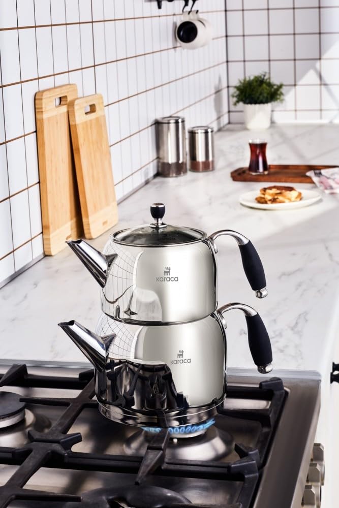 - Induction-Compatible: This Turkish tea pot is optimized for use on all types of stoves, including induction hobs, providing maximum heat transfer and efficiency.