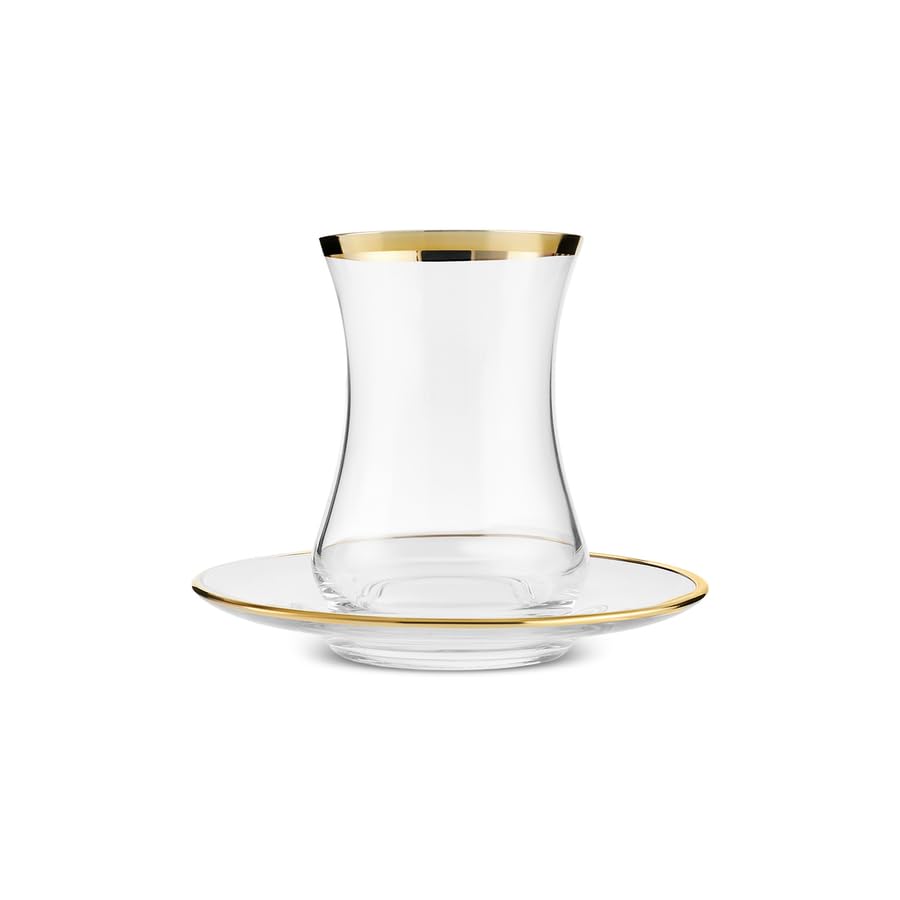 KARACA Sydney 12-Piece Glass Turkish Tea Set for 6 People, Gold, Tea Service, 6 Turkish Tea Glasses with Saucers, 12 Pieces, Glass, Tea Plates/Saucers