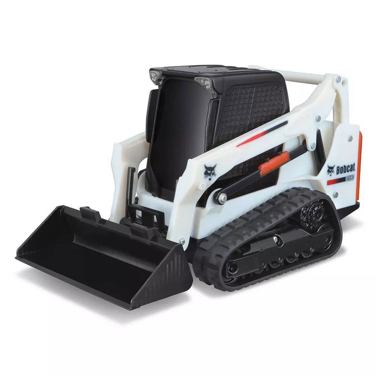 The world-renowned Maisto Tech Remote Control work machine, the Bobcat T590 Compact Track Loader, has functional, manual arms and bucket.