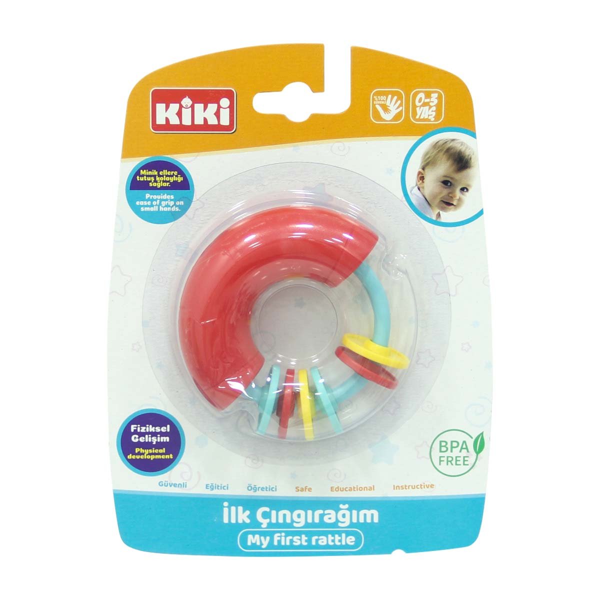 My First Rattle Rattles are more than just toys that entertain babies; they are objects that seriously contribute to their development. Although they start to hear and see from the moment they are born, rattles are toys that help the development of hearing and vision for babies whose senses are not fully developed. They help the visual, sensory and physical development of little ones. Age Group: 0-3 Years Barcode: 8698782146768 Item No: AE-1810 Box Dimensions: 22.5 x 17 x 3.5 cm. Desi Value: 1