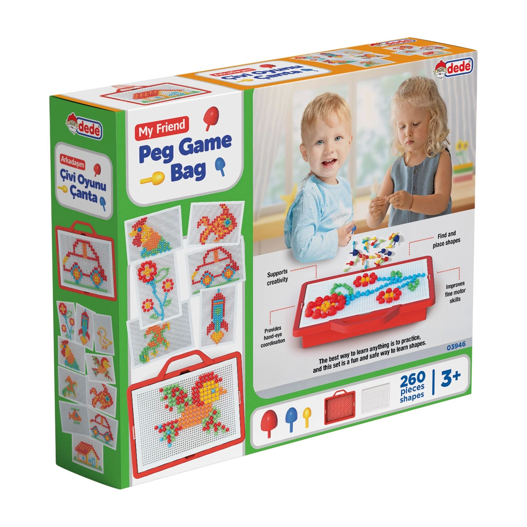 My Friend Nail Game Bag It consists of 260 pieces. Supports creativity. Provides hand-eye coordination. Develops fine motor skills. The product has passed health tests. It is domestic production. Box Dimensions: 33 x 29 x 8 cm. Age Group 3+