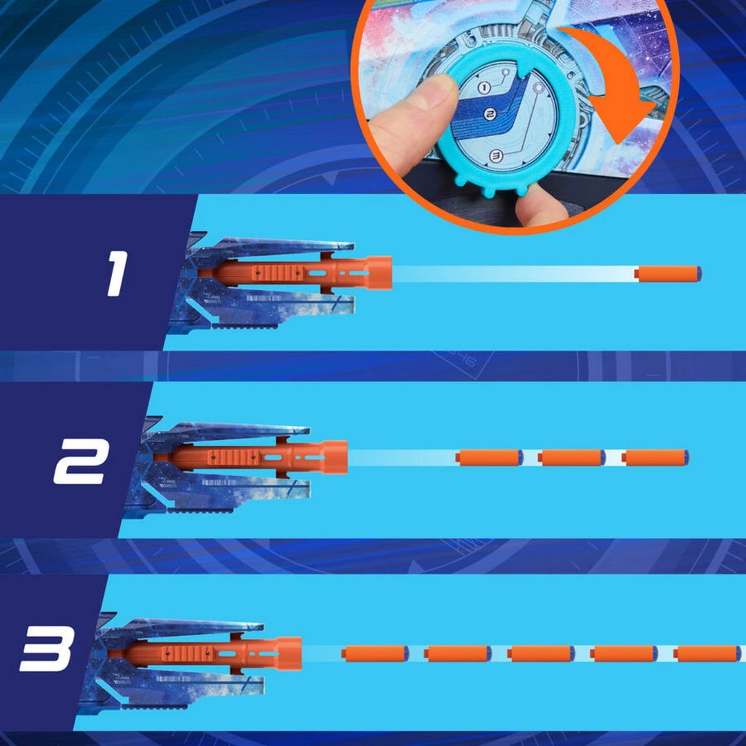 The Nerf Loadout Galactic Commander blaster includes 48 Nerf N1 darts designed for exceptional accuracy, speed and distance.