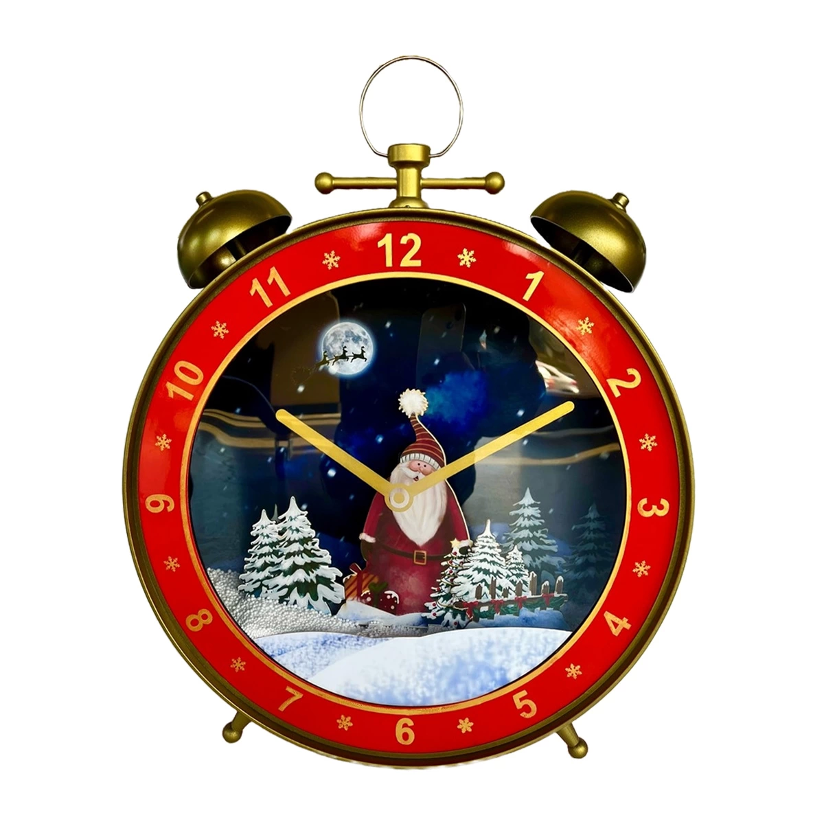 New Year's Themed Wall Clock An ideal choice to bring the New Year spirit to your home! Our New Year's Themed Wall Clock is decorated with details that warm up cold winter nights. While finely detailed snowflakes, pine trees and Christmas ornaments appear in the background of the clock, its design completed with red, green and gold tones is dazzling. The hour markers gain a different interpretation with tiny New Year's ornaments, and the clock reminds you of the joy of New Year every time you look at it. Age Group: Adults.