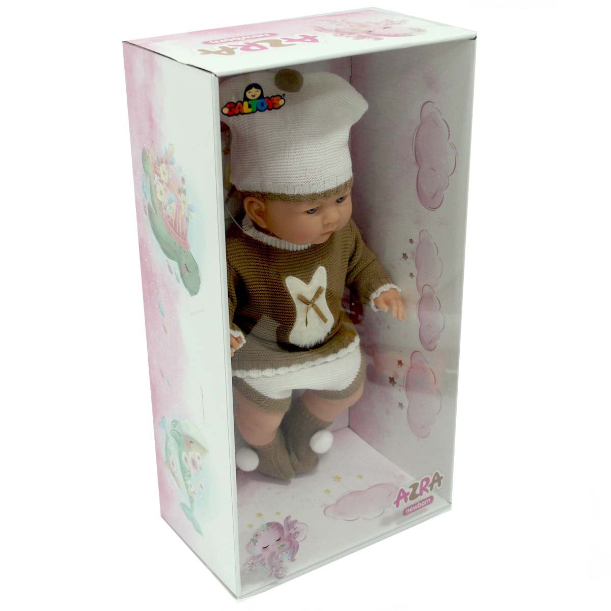 Newborn Azra Baby in Brown and Beige Dress Newborn Azra Baby is waiting for attention. Easy to clean and durable. Just like a real baby! The baby is 40 cm tall, Age Group: 3+ Years Barcode: 8692644042472 Item No: GLT1128-B Box Dimensions: 45.5 x 25 x 15.5 cm. Desi Value: 7