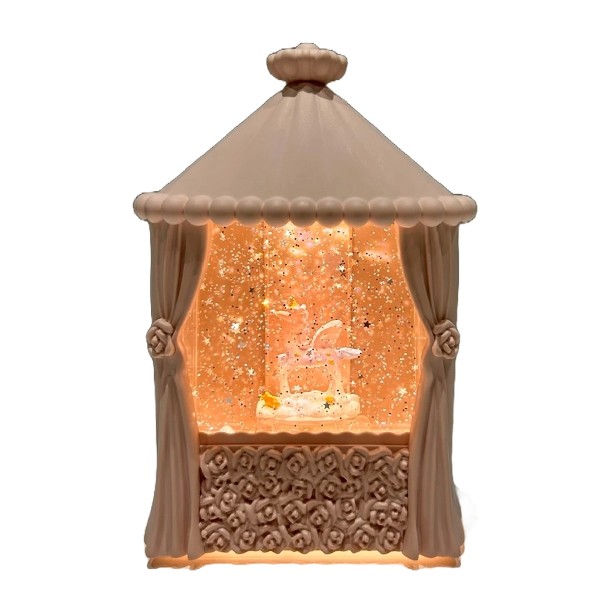 Plastic Rectangular Snow Globe LLM-HDY0374 Would you like to make a magical touch in your home or office? Our magnificent snow globes are just for you! This elegant and impressive decorative object creates a dazzling atmosphere in any environment. It invites you to a fairy-tale world with its detailed figures and snowfall effect. Product Dimensions: 16 x 10 x 7 cm. The product works with a USB cable, included in the box. Box Dimensions: 14 x 9 x 19 cm. Age Group: Adults.