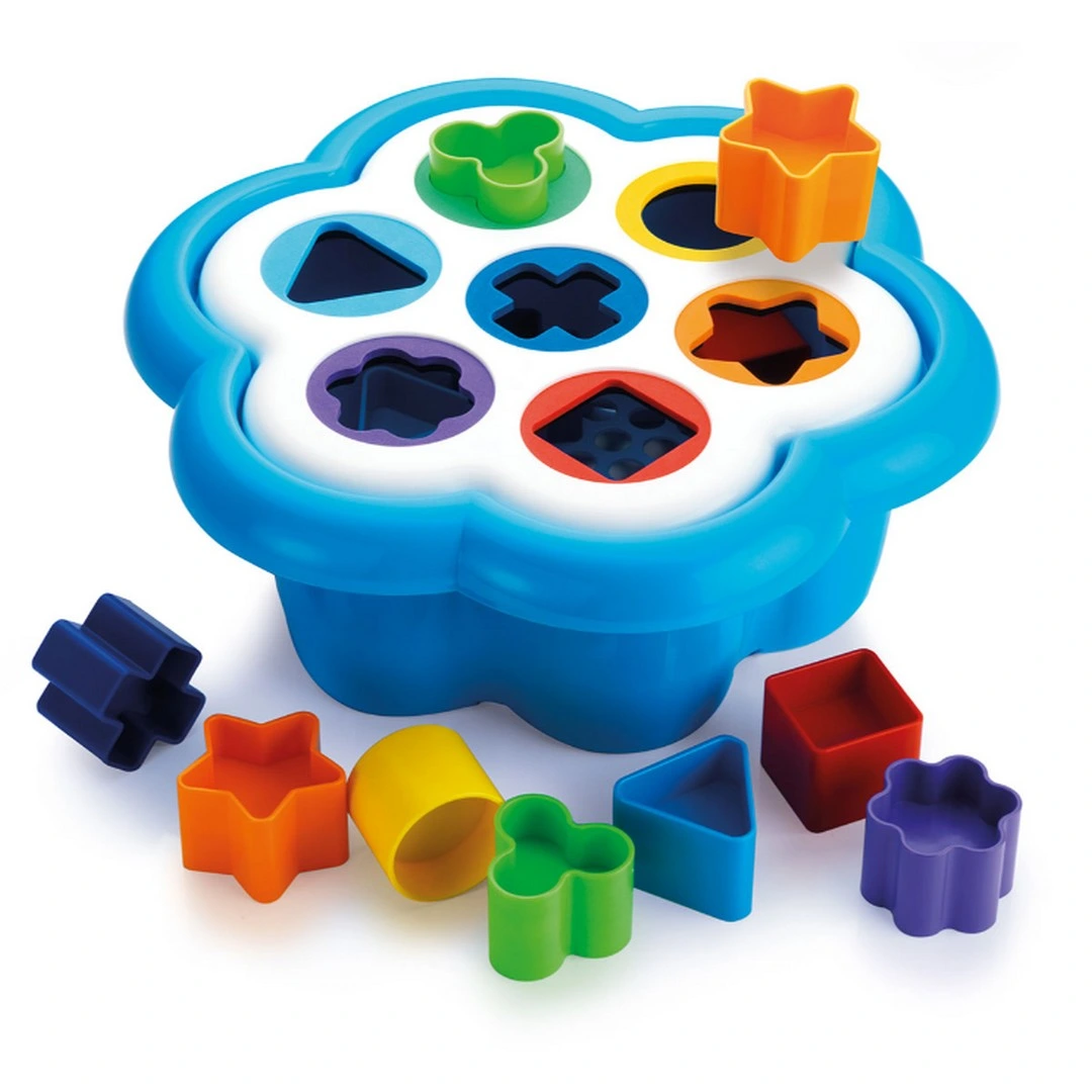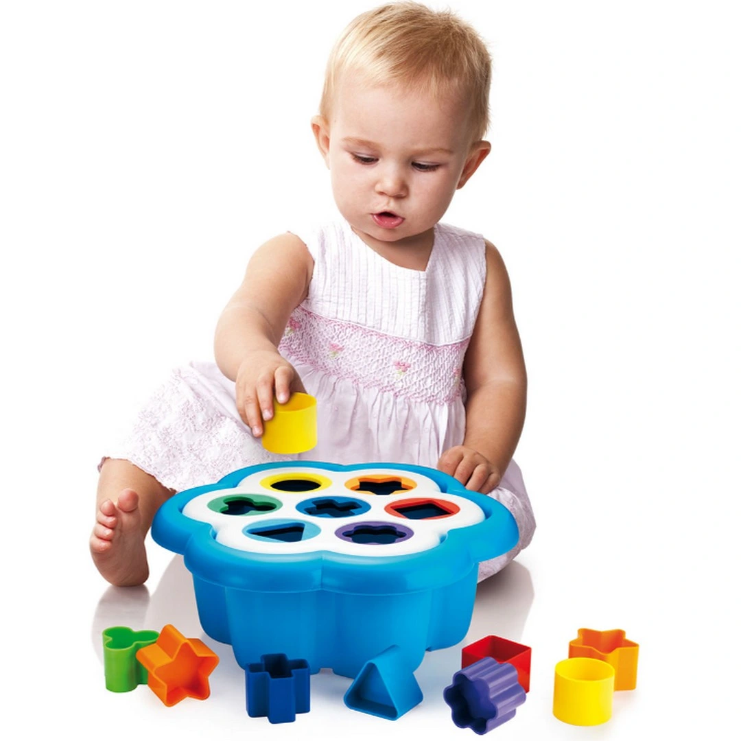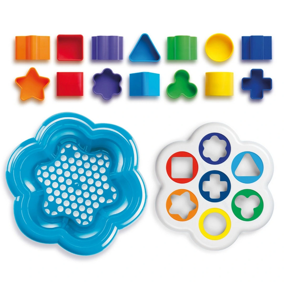 It's flower-shaped, has seven holes of varying sizes, and cheerful colors that your child will learn to recognize.