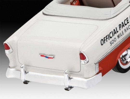Revell 1955 Chevy Indy Car 39. Red and white convertible Chevy Bel Air for the Indianapolis 500 on May 30, 1955 Powered by the revolutionary V8 small block engine with a capacity of 4.3 liters. - Multi-part V8 engine - Lots of chrome parts - Construction manual and authentic decals Level: 4 Length: 200 mm Depth: 74 mm Height: 58 mm Main Colors: 36104, 36108, 36109, 36130, 36131, 36199, 36301, 36302, 36330, 36378 Additional Colors: 36107, 36112, 36152, 36190, 36191, 36730, 36731 Age : 12+ Number of Pieces : 133 Difficulty : 4 Scale : 1:25 Age Group: 12+ Years Barcode: 4009803076867 Item No:VSA07686 Box Dimensions:35.5 x 21.5 x 7 cm. Desi Value: 2