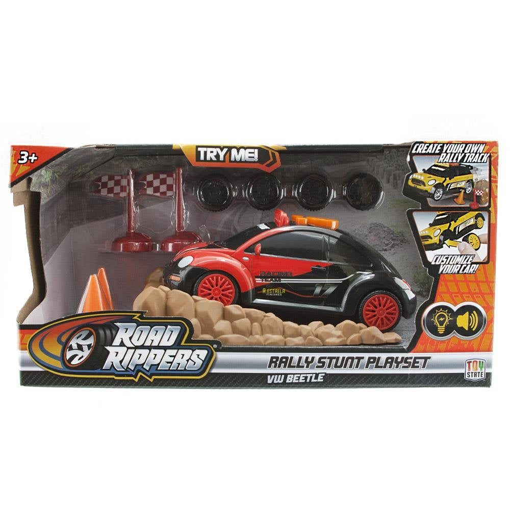 The playset includes a Road Rippers Sound and Light Platform Toy Car, a ramp, a flag and
