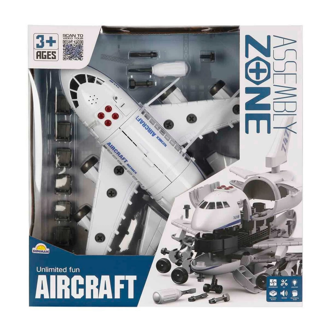 Sound and Light Push-Pull Passenger Plane Your captain is speaking! Are you ready to sit in the captain's seat? With this Sound and Light Push-Pull Passenger Plane, you will assemble your own plane and fly into the skies like a real pilot. You can feel like an engineer as you carefully assemble each part. So now assemble the parts, tighten the screws and start the countdown for takeoff! Once you have completed the construction phase of your plane, you are ready to fly. By pressing 4 different buttons on it, you can hear sounds such as the plane engine sound, the plane taking off and the announcement sound. Do you feel like you are in a real plane? But this is just the beginning! With every press of the buttons, the lights in the plane's cockpit will start flashing. You are in complete control! Even if you finish assembling your plane, your journey will not be over because This wonderful airplane is designed so that you can assemble it and disassemble it again and again, and embark on a new adventure each time. A fun experience awaits you. Fasten your seat belts dear passengers, we're going to fly! It supports the development of children's imagination and creativity by creating new stories, while contributing to their play and imitation skills. Games they play with their friends help them socialize. It also helps children develop construction skills and hand-eye coordination by combining the pieces. In the box; airplane, screw, screwdriver, 2 screwdriver bits and various accessories are included. The product works with 3 x 1.5V AG13 batteries. Product dimensions: 45 cm Box dimensions: 39 x 13 x 41.5 cm. Age Group 3+ Years