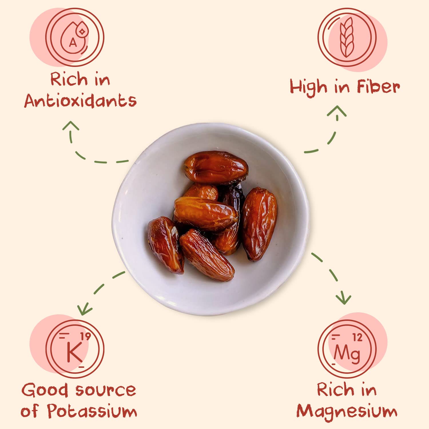 - SUPER NUTRITION: Dates are an excellent source of dietary fiber, antioxidants, potassium, calcium, iron and magnesium all of which help boost your immunity, promote healthy nervous system and regulate your metabolism. Sunny Fruit Dried Deglet Nour Dates contain no gluten, dairy, eggs, added sugars, syrups, sulphite, sulfur, or soy.