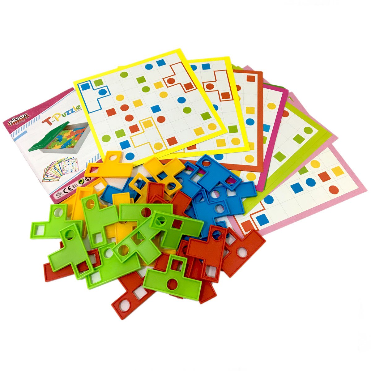 T-Puzzle 32 Pieces T-Puzzle is designed as Very Easy, Easy, Medium and Hard levels. A T-Puzzle piece is selected from the box and placed in the appropriate areas on the puzzle card. When all the shapes on the puzzle card are completed, the card is completed and you can move on to the next card. While 2 children are playing; Both children use the same colored puzzle card. They select T-Puzzle pieces from the box and place them in the appropriate areas on the puzzle cards. One of the children tries to complete the puzzle card before the other. The child who completes the puzzle card before the other wins the game. The game continues by moving on to the other puzzle cards. Age Group: 3+ Years Barcode: 8693461022128 Item No: 03518P Box Dimensions: 27 x 26.5 x 7.5 cm. /> Desi Value: 2