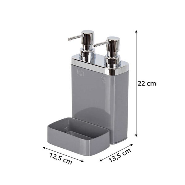 The Viva 2-Pack Liquid Soap Dispenser with Sponge in Gray is one of the most popular pieces in countertop sets. Kitchen liquid soap dispensers are an essential accessory in spaces where hygiene is paramount. Also known as the liquid sponge holder, this dispenser also features a separate sponge compartment, keeping both liquid soap and sponge neatly together, eliminating clutter and helping your kitchen look tidier.