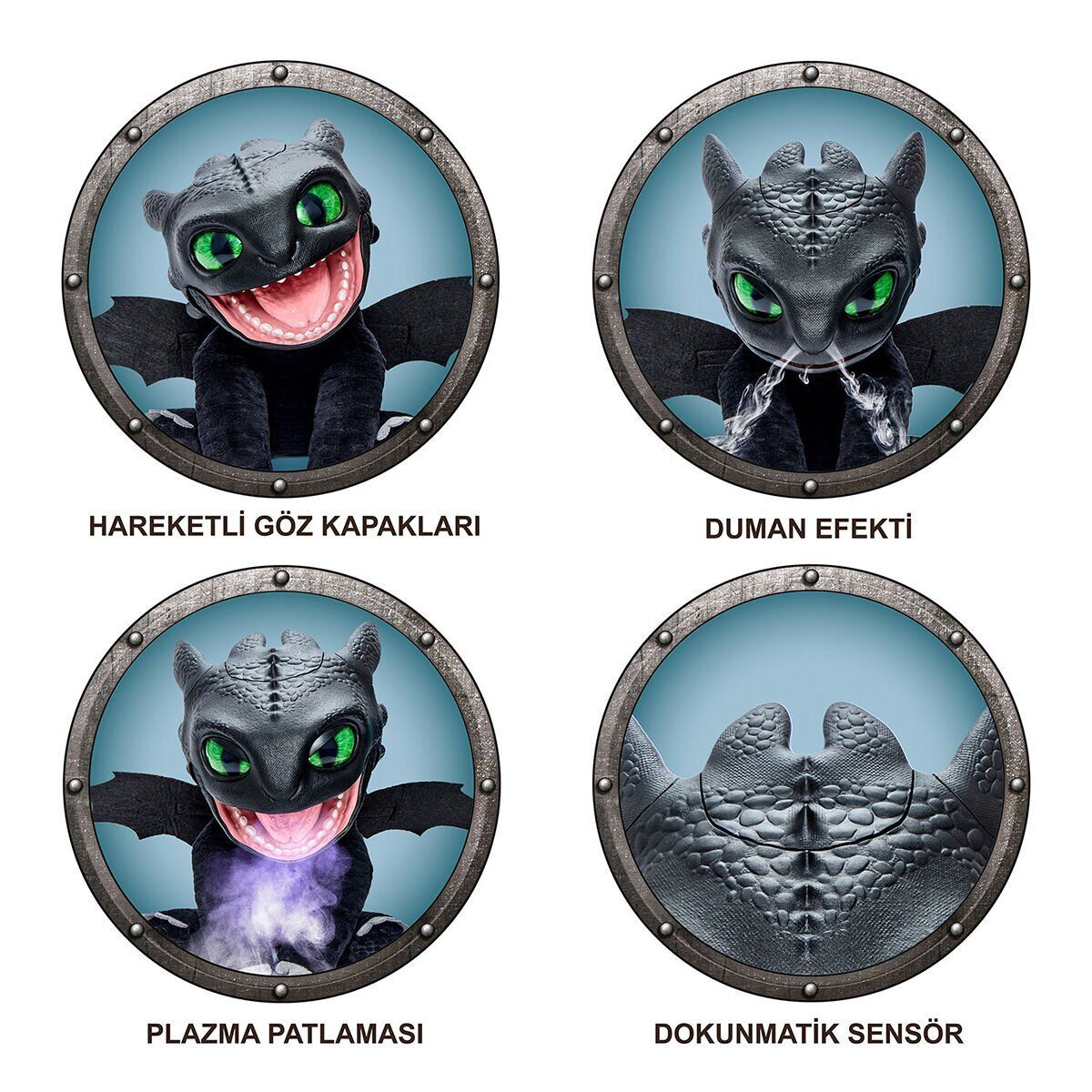 -Features electronically assisted actions controlled by your hand movements. -RELIVE THE MAGIC: Along with authentic movie sounds and roars, Toothless can blow dragon smoke from his nose and mouth.